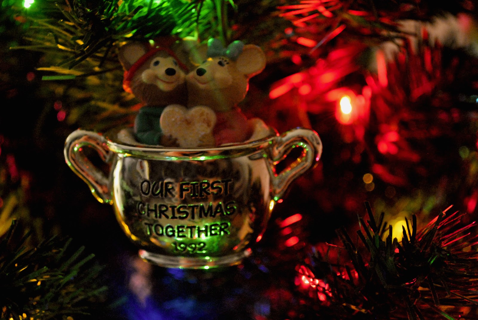 I love all the handmade ornaments, and the nativity set my little girl played with as a toddler (always taking baby Jesus and Mary and hiding them somewhere in her room!)...  Most of all, I LOVE our little feed trough filled with hay and a babe, 'wrapped in swaddling clothes'!  It helps us to remember the True meaning of Christmas every day!